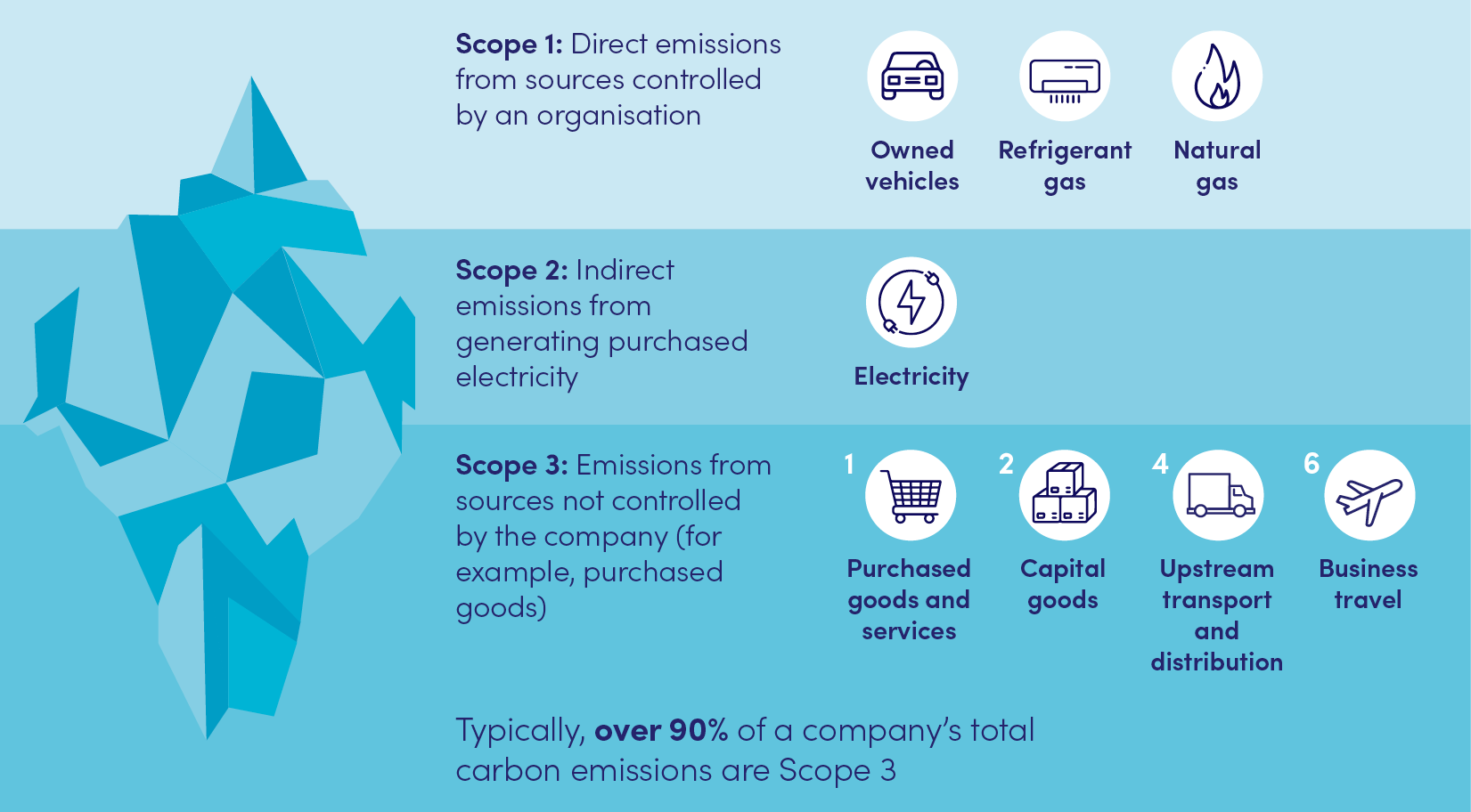 The CarbonCube® calculates emissions from Categories 1, 2, 4, and 6 of Scope 3