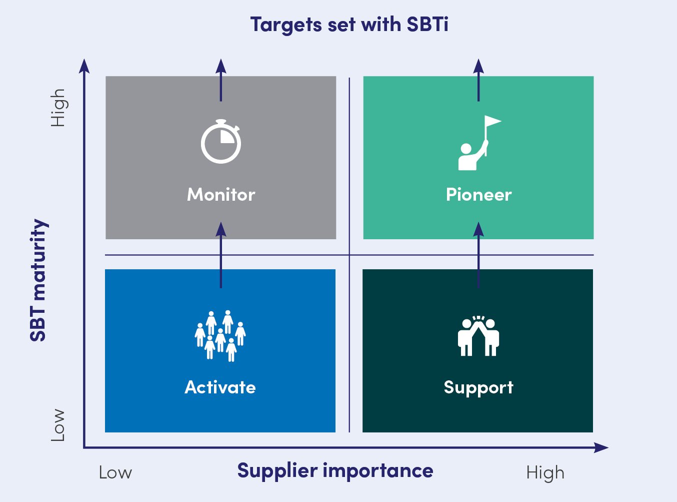 - Next, categorise and cluster suppliers based on their SBT maturity and importance to the organisation