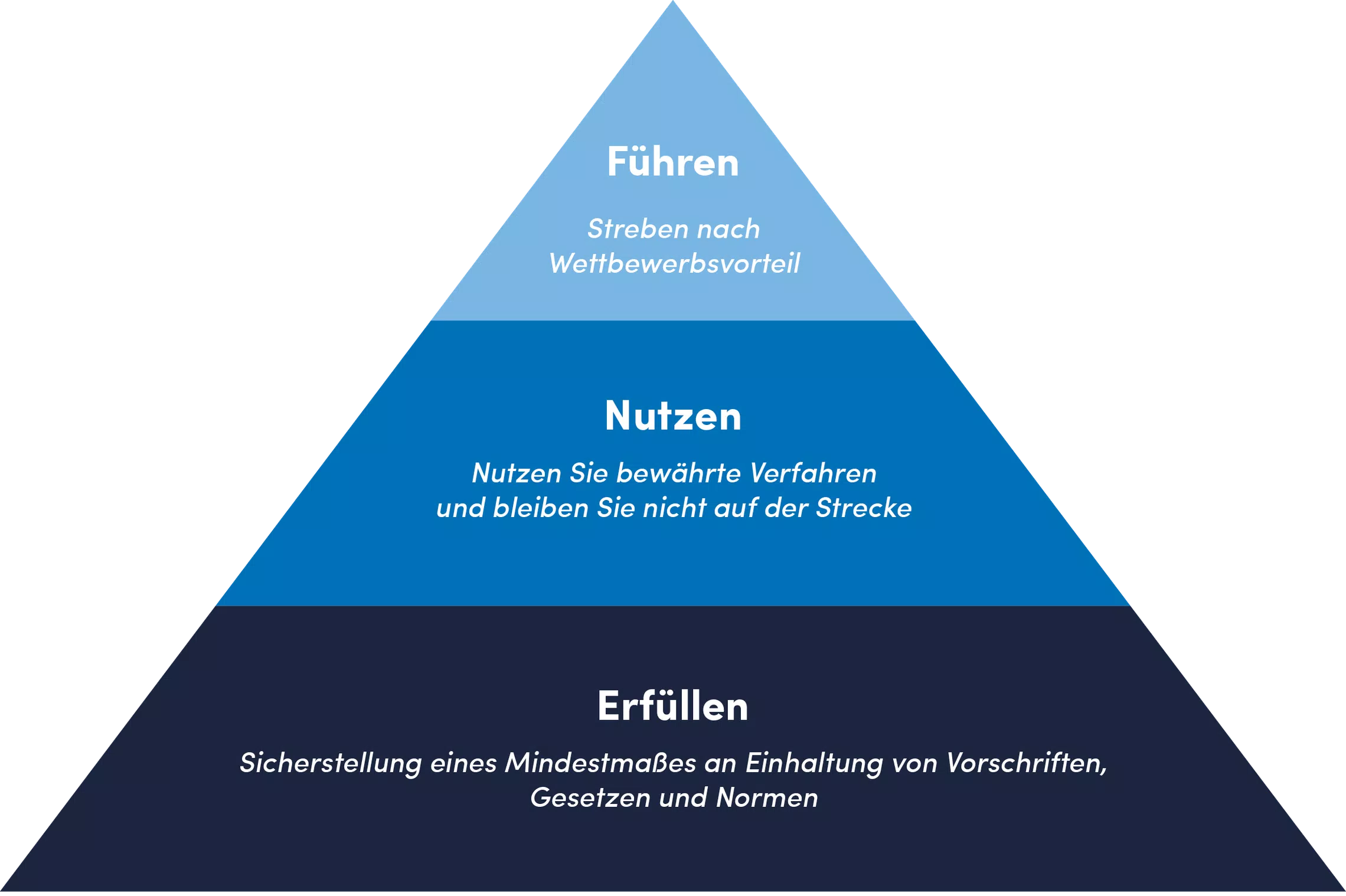 Unternehmen können nicht alle Aufgaben gleichzeitig lösen. Versuchen Sie also, ein Verständnis der zentralen Nachhaltigkeitsparameter zu erlangen, die in Ihrer Lage, für Ihre Kunden bzw. Ihre Unternehmensführung die größte Bedeutung haben. Unterteilen Sie diese anschließend weiter in priorisierte Ansätze: