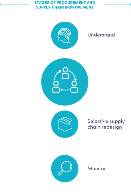 Amélioration de la chaîne d'approvisionnement et des achats en quatre étapes :