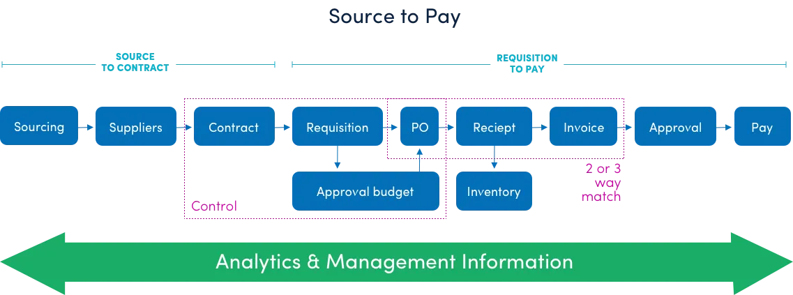 A high level Source to Pay process is simple and is made efficient by having the relevant controls in combination with an easy and intuitive cloud based tool