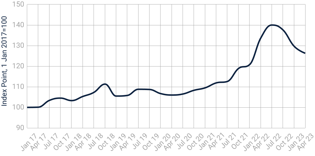 H1 2023 saw markets begin to stabilize, and ocean, road, and air freight rates decrease, with the former even falling back to pre-pandemic levels. In ocean transport, port bottlenecks have eased; in road haulage, driver shortages – though still an issue – have also moderated. Meanwhile, fuel costs have declined across all markets, with energy markets in a comparatively positive position versus 2022.*