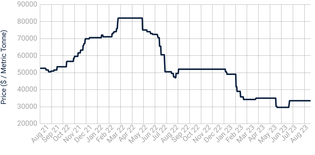 - Prices are expected to rise towards the back end of 2023 with a potential for the Chinese market to rebound and bring demand up.
