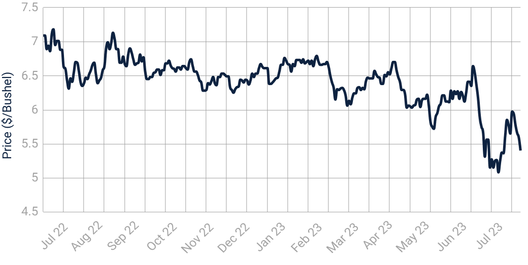 Fig. 2: “Corn Number 2 Yellow Central Illinois ($/Bushel)” (July 2022 to July 2023), Refinitiv Eikon