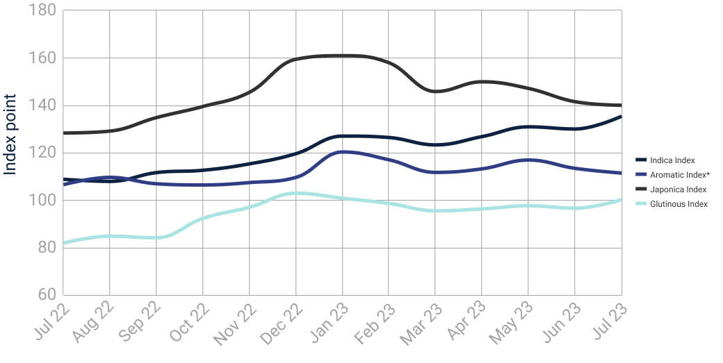 *The Aromatic Index follows movements in prices of Basmati and fragrant rice