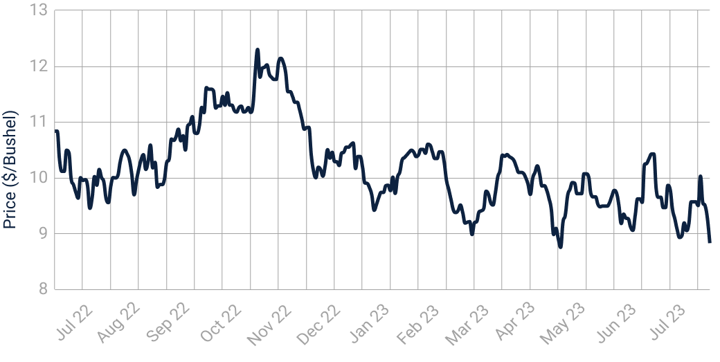 - Prices have generally faced downward pressure since mid-2022, as supply prospects improved, with the Black Sea Grain Initiative easing market uncertainty regarding Ukraine exports.