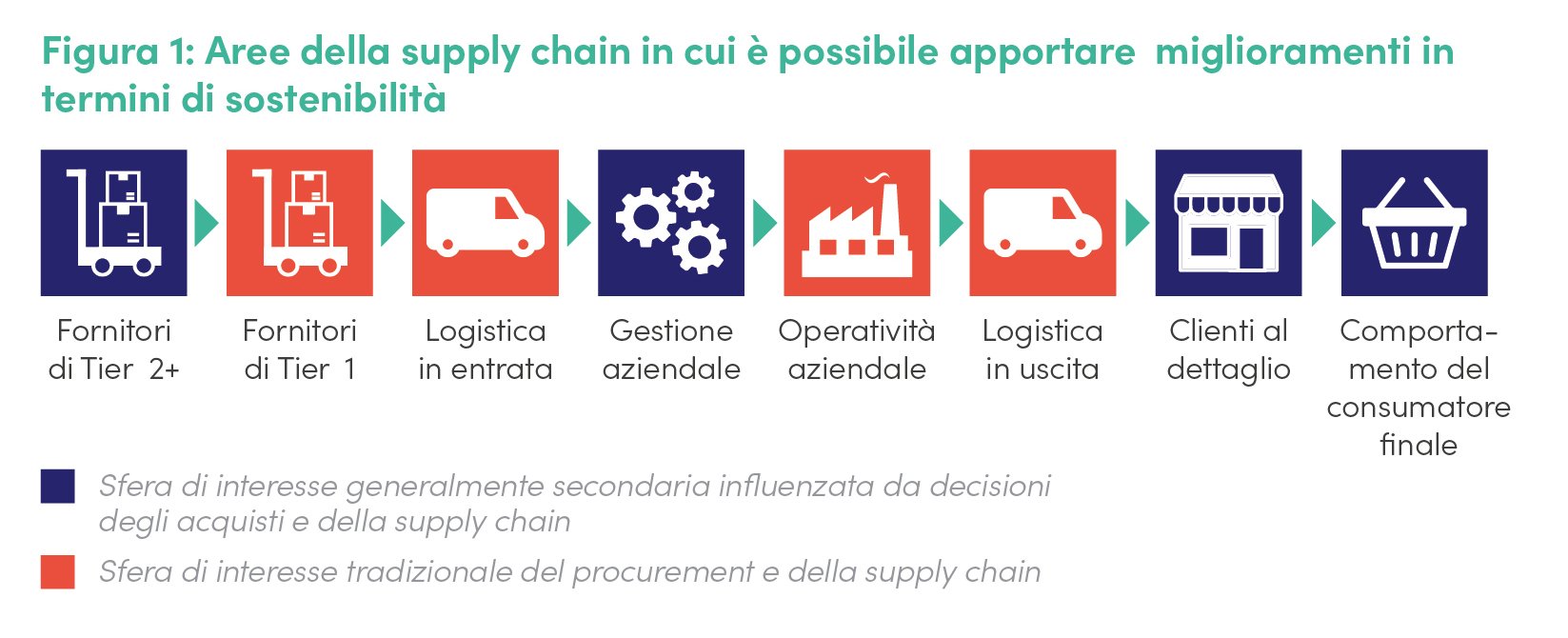 - Identificare e minimizzare i rischi di sostenibilità in ogni settore di fornitura