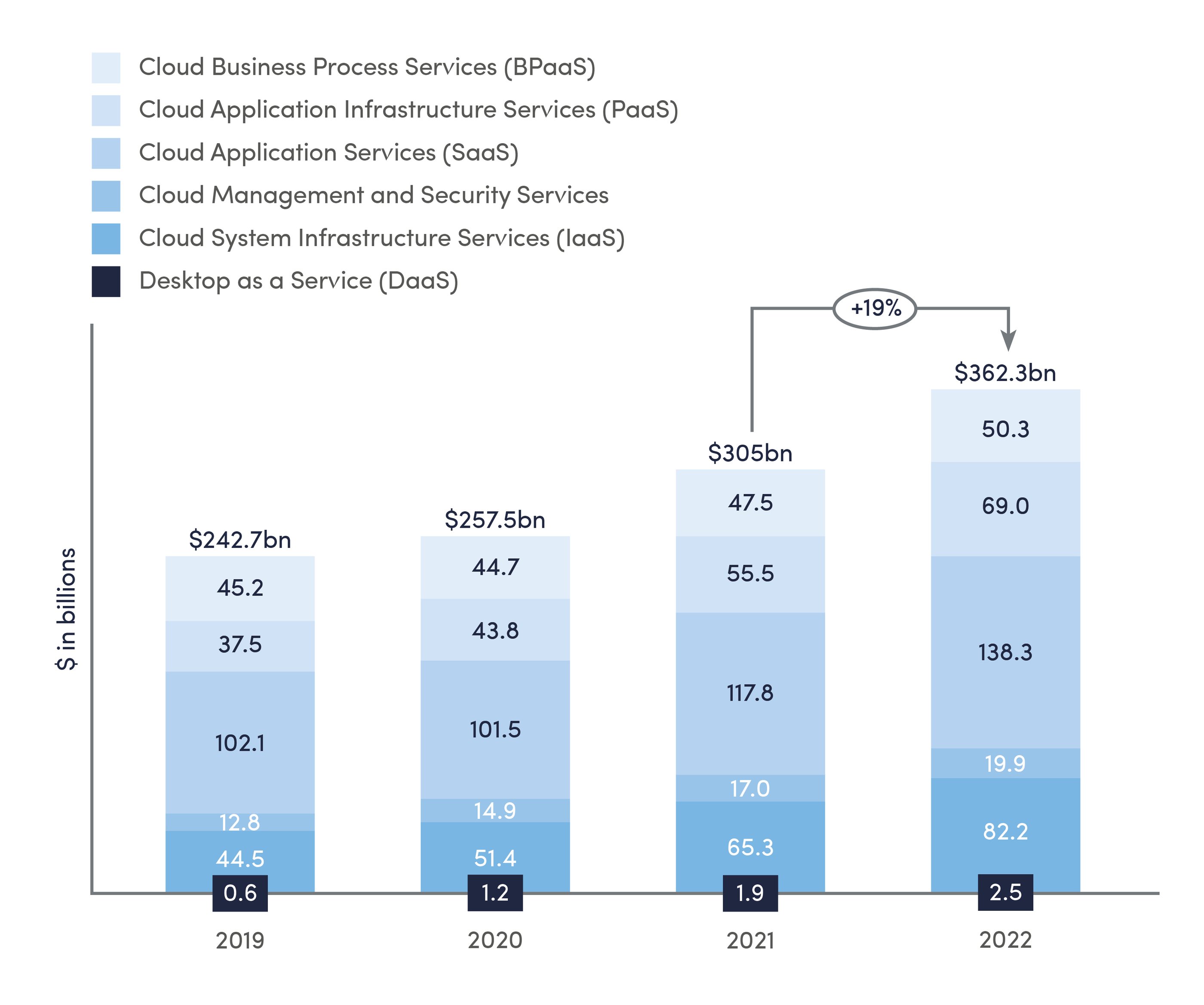 According to Gartner, worldwide end-user spending on public cloud services was forecast to grow 18.4% in 2021 to a total of $305 billion, which is up from $257.5 billion in 2020.